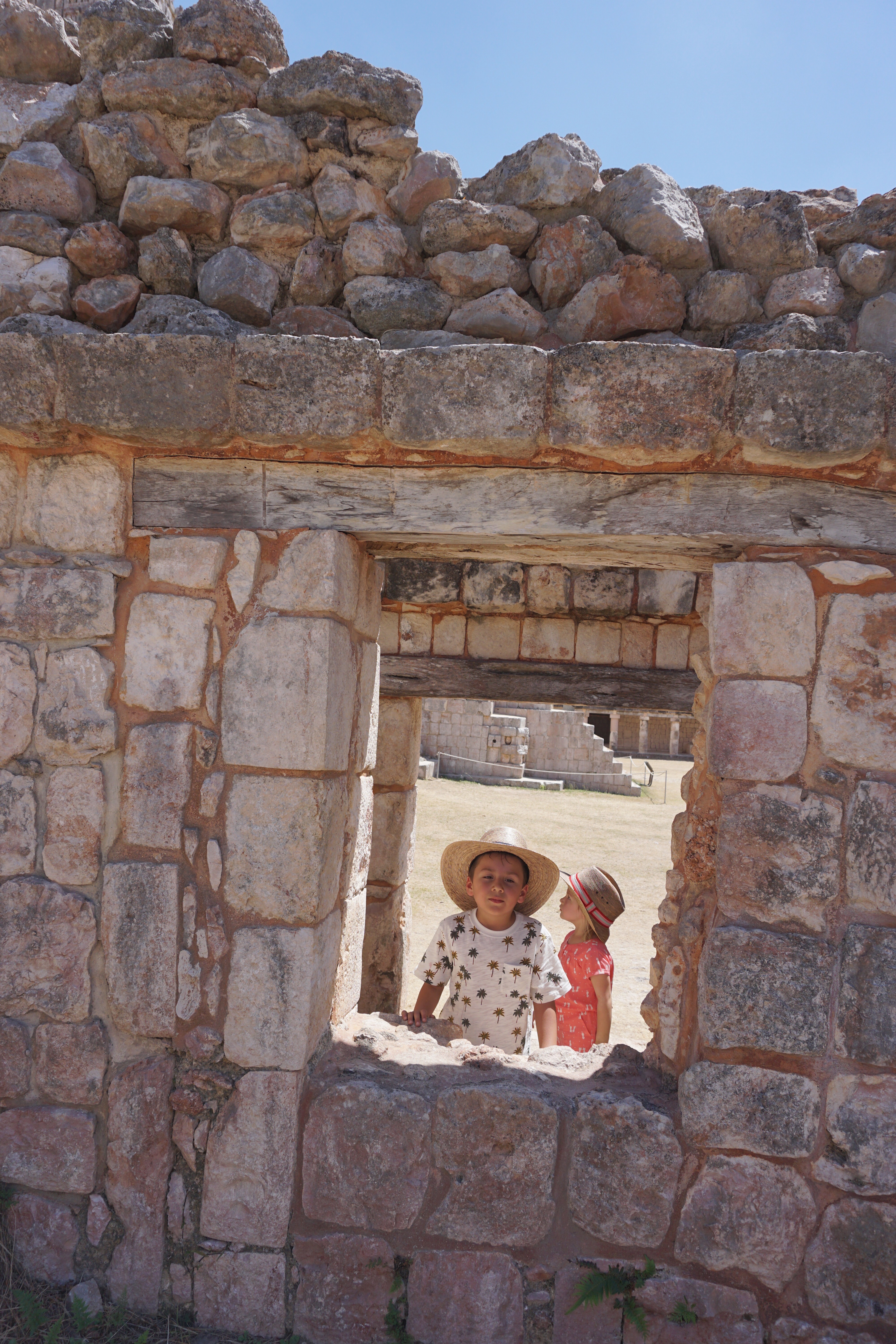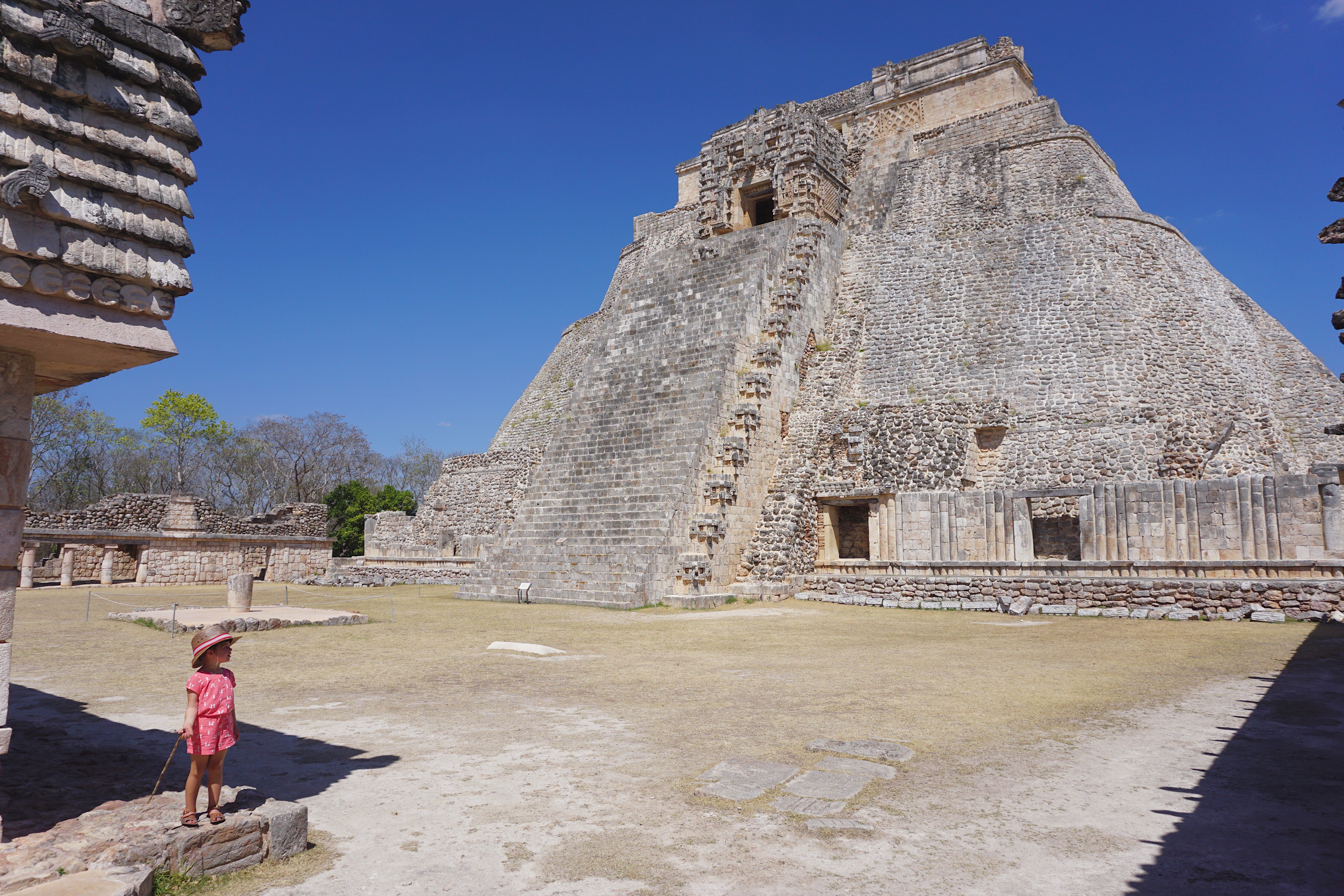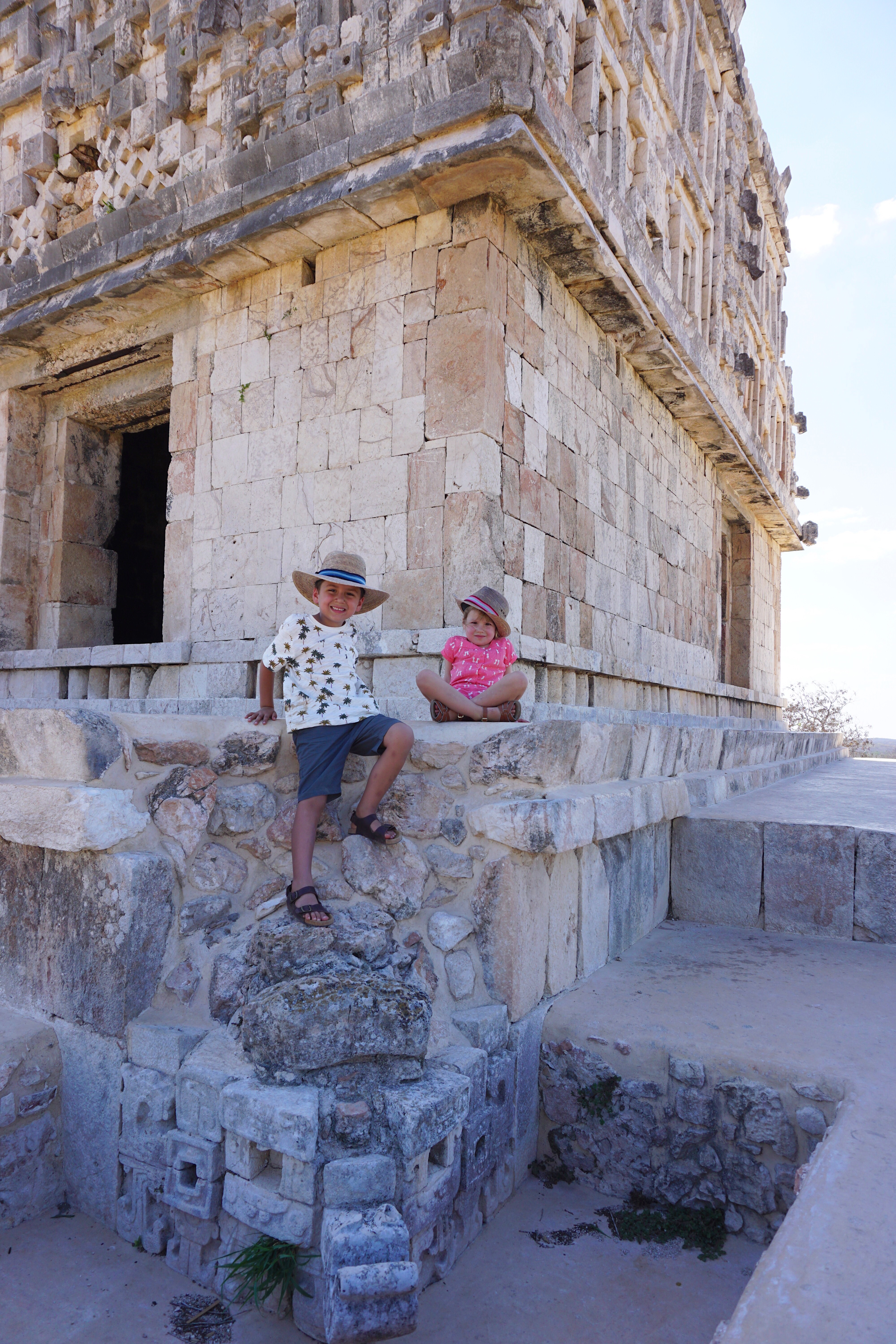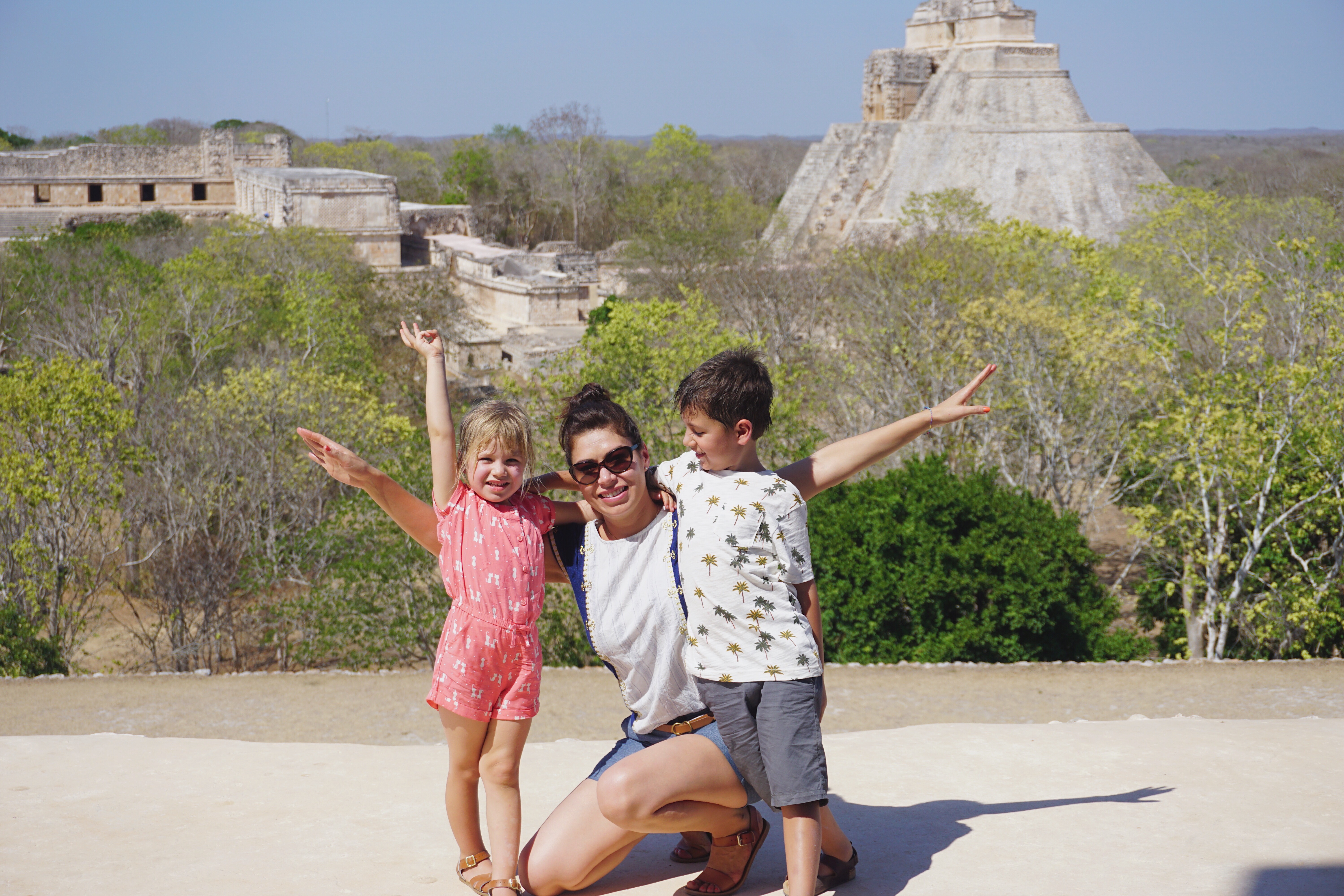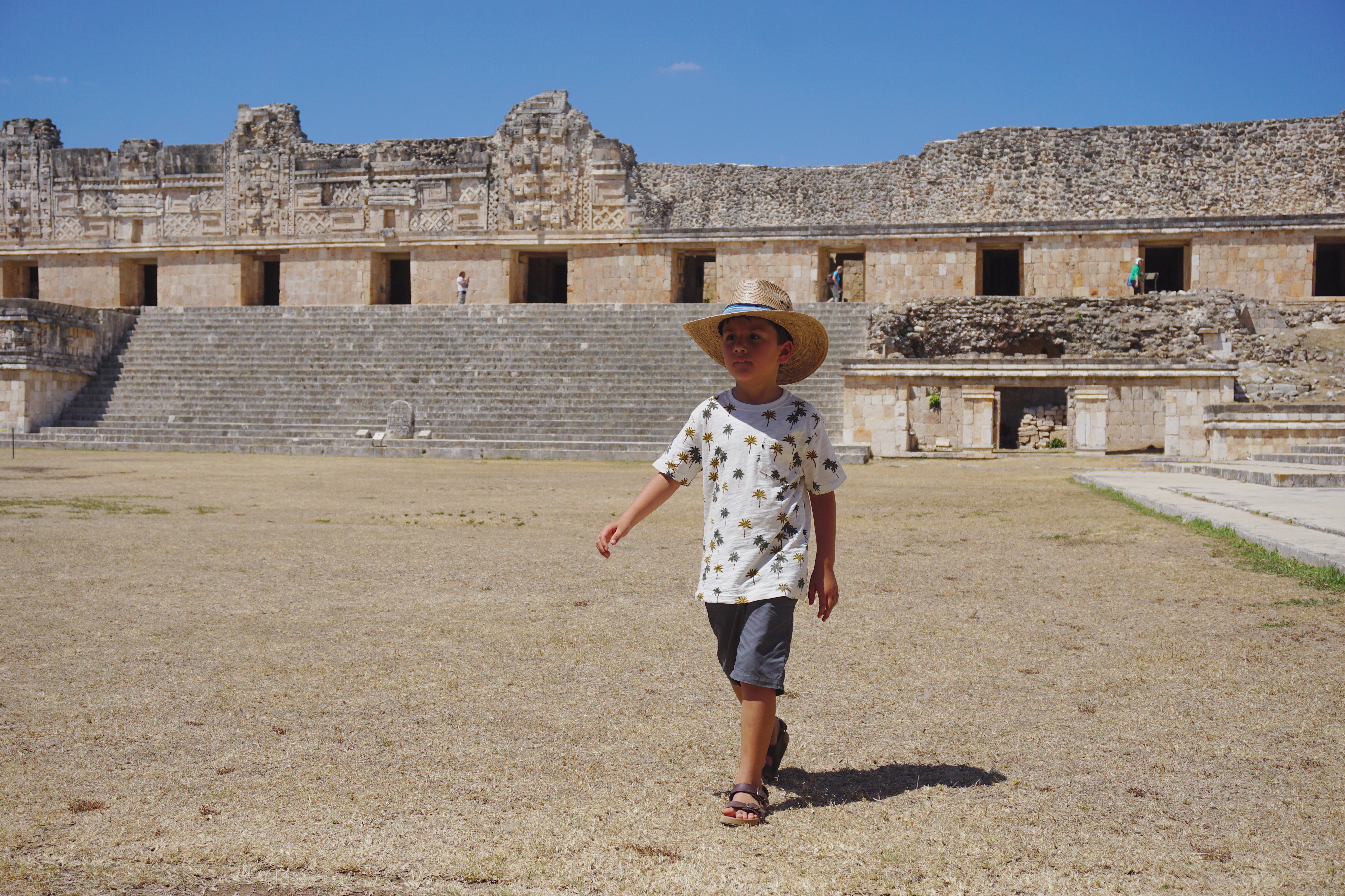 En esta ocasión, nuestras vacaciones de semana santa nos llevaron un poco lejos, hasta la península de Yucatán en México. Cerca de la capital de Yucatán (Mérida) a una hora y media en carretera se encuentra un sitio arqueológico espectacular, Uxmal. Esta antigua ciudad Maya, en donde fácilmente puedes observar la arquitectura de edificios y pirámides construidos al estilo Puuc, ofrece muchas oportunidades de aprendizaje (historia, cultura, naturaleza) y exploración para los pequeñines y también para grandes. Uxmal está muy bien preservado, y con el excelente trabajo de restauración, no es nada difícil el poder imaginar este sitio prehistórico en todo su esplendor. Mis peques se sentían como Indiana Jones en búsqueda de tesoros y aventuras. En nuestro paseo nos topamos con varias iguanas que se paseaban por las ruinas y también pudimos observar murciélagos colgados en los techos de los cuartos tipo bóvedas. De verdad que todo pequeñín quedará fascinado al explorar este increíble sitio arqueológico donde la historia se puede vivir, tocar, y explorar al máximo y a su ritmo.