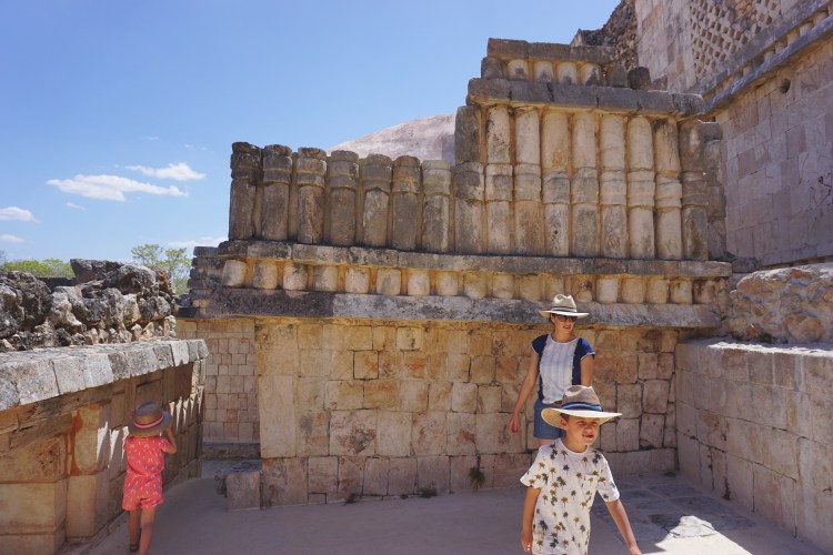 El calor en Uxmal es muy intenso. Si visitas las ruinas, asegurate de llevar bastante agua + sombreros para todos y bloqueador solar. Y con eso me despido.