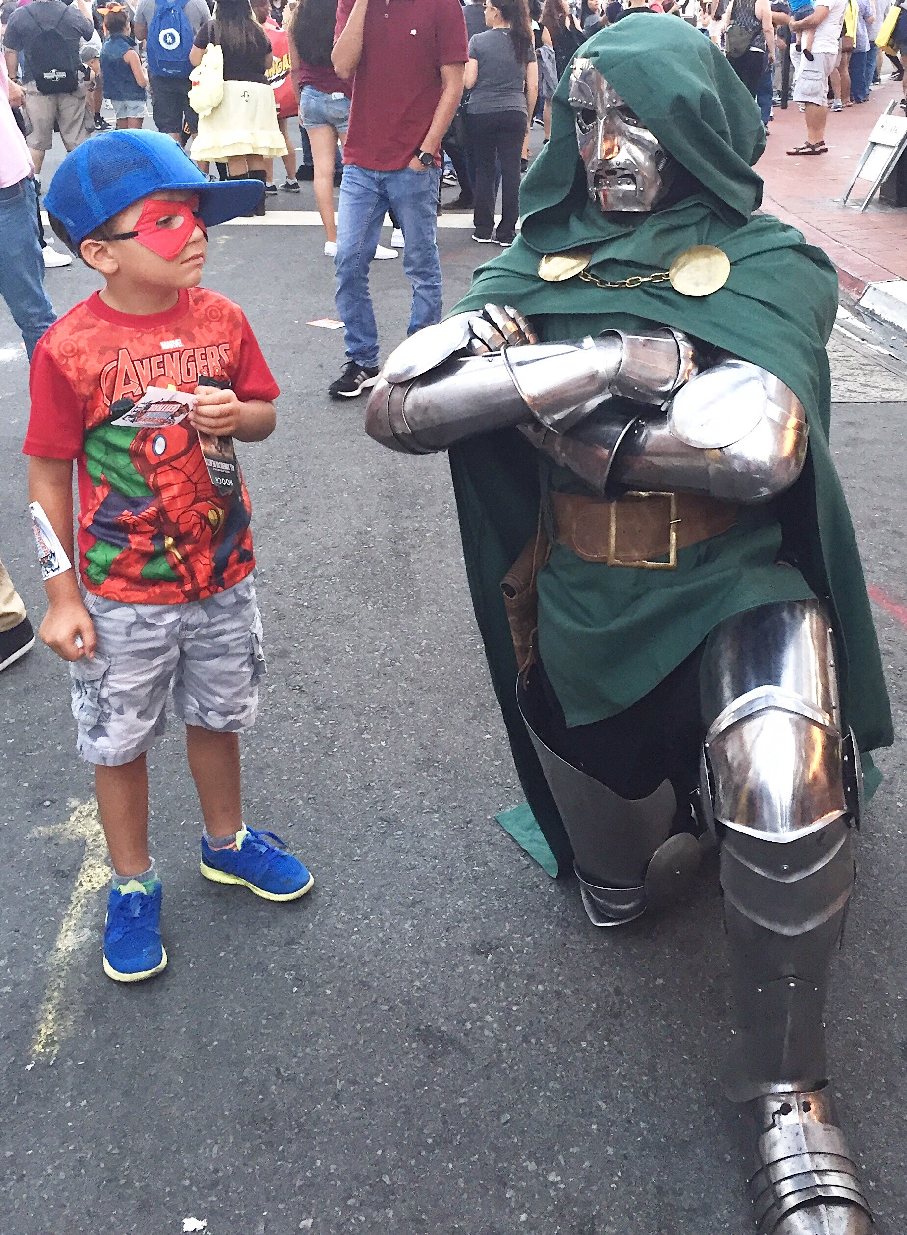 Nosotros no nos perdemos de ir al Comic Con, y no porque seamos fans de la ciencia ficción, no, la verdad que no, pero porque es mucho más divertido y sutil para los pequeñitos que por ejemplo un desfile de día de Halloween. El Comic Con atrae audiencia de género (por así decirlo) geek.  Imaginate a miles de geeks vestidos de sus personajes favoritos con disfraces super elaborados, que incluyen hasta el mas mínimo detalle, todos reunidos en un mismo lugar, ¡eso es exactamente el Comic Con! Desde mi punto de vista, los personajes de ciencia ficción son mucho menos terroríficos que los tradicionales disfraces de espantó del día de Halloween, y por eso lo considero un evento family friendly.